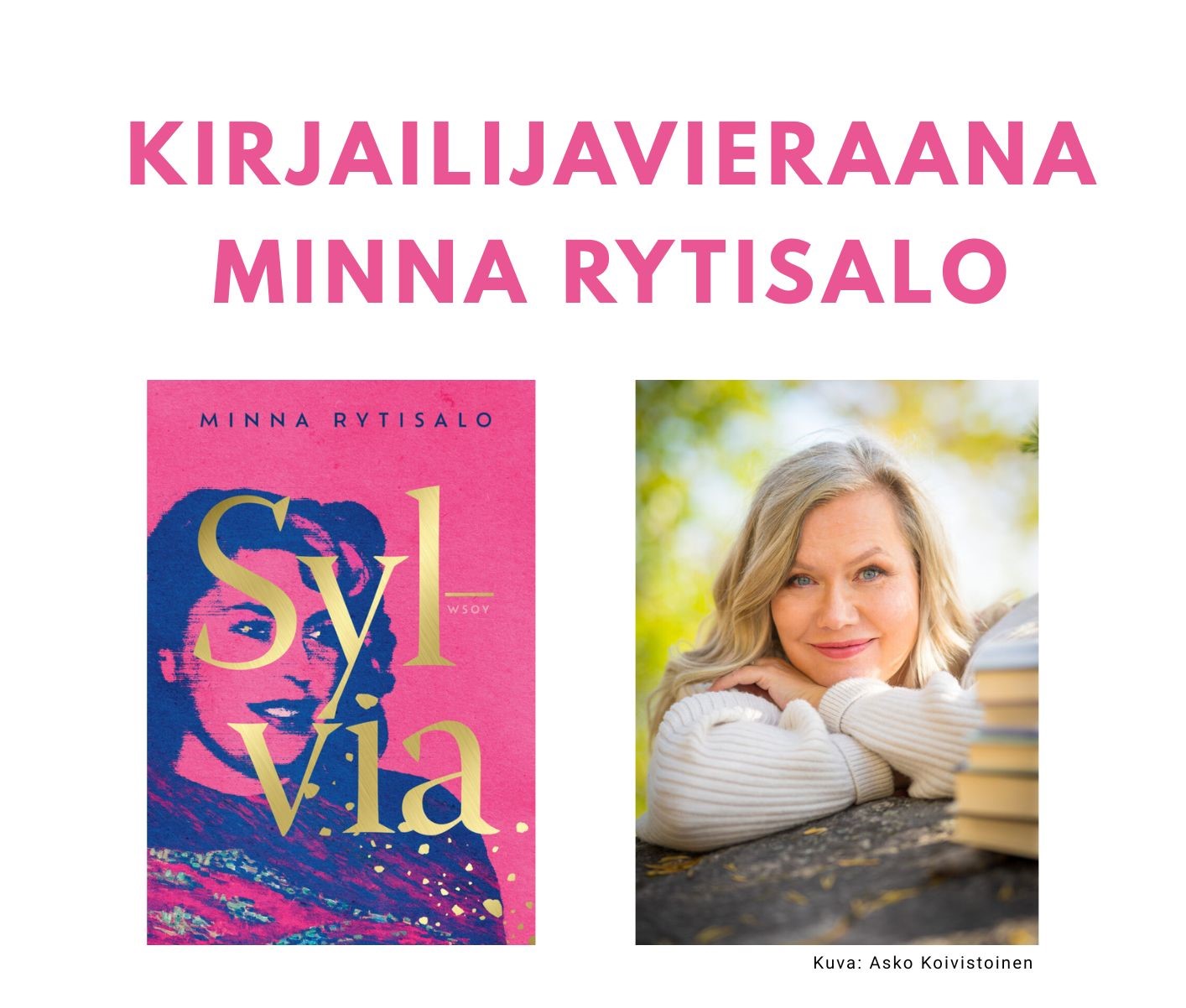 Kirjailija Minna Rytisalo vierailee Ivalon pääkirjastossa maanantaina 26.1.2026 klo 18! Rytisalo saapuu Ivalon pääkirjastoon kertomaan viime syksynä ilmestyneestä uutuusromaanistaan Sylvia (2025).